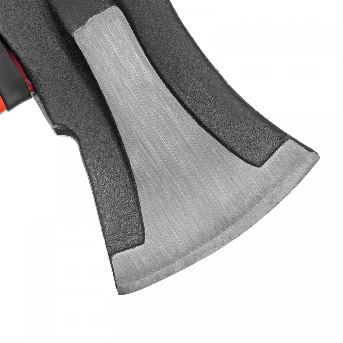 • Высокая прочность — полотно выковано из стали 45, топорище изготовлено из фибергласа.