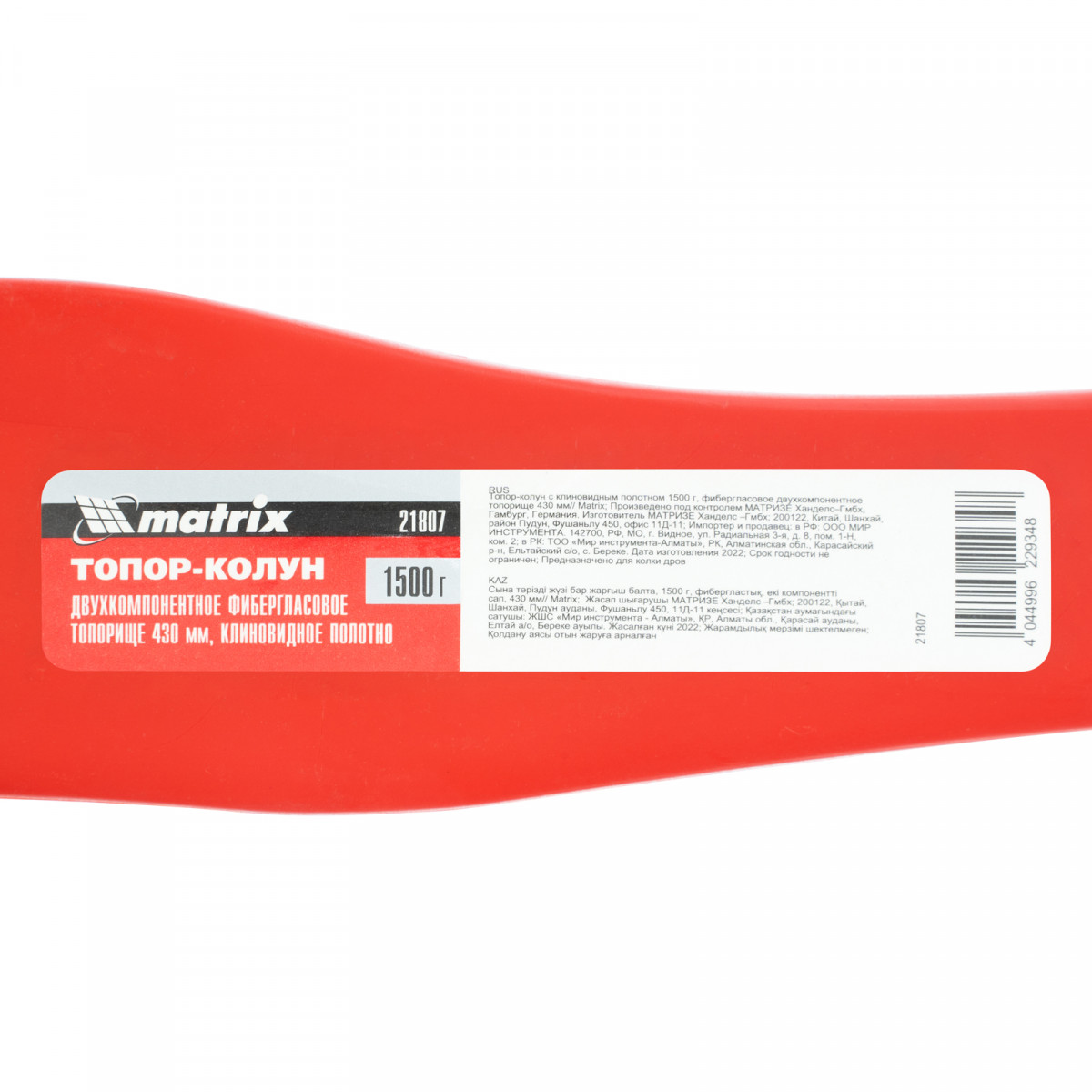 Топор-колун с клиновидным полотном 1500 г, фибергласовое двухкомпонентное топорище 430 мм Matrix