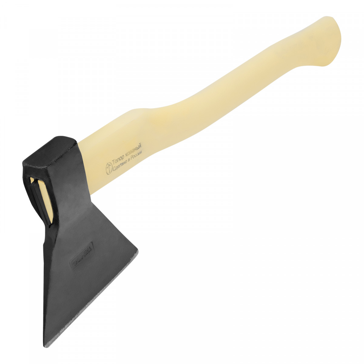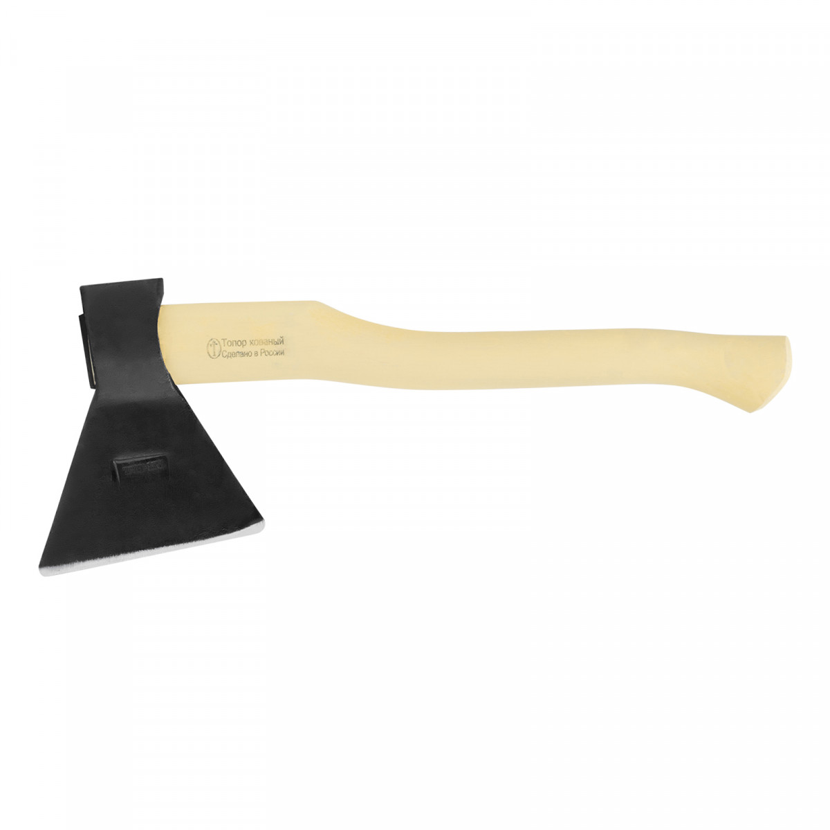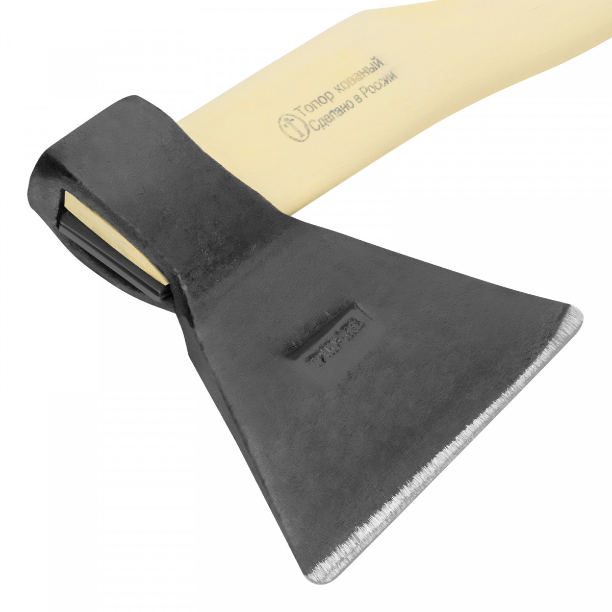 • Устойчивость к разрушению — березовое топорище отшлифовано, покрыто шпатлевкой и пленкой.