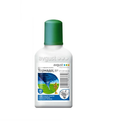 Самым универсальным и эффективным средством против злейших и трудноистребимых сорняков является «Торнадо», производимое фирмой «Август». Этот препарат является контактным системным универсальным гербицидом, имеющий сплошное действие.