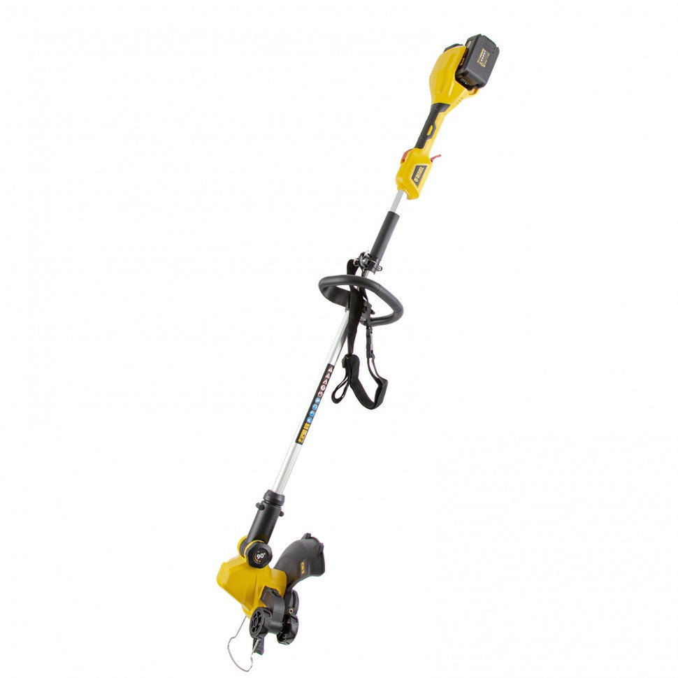 Триммер аккумуляторный работает от батареи Li-Ion напряжением 36 В и емкостью 4 А·ч, обеспечивая ширину скашивания 300 мм. Предназначен для скашивания свежей травы, обработки границ газона, удаления растительности на небольших приусадебных участках. Выполняет поставленные задачи с помощью лески, совмещая функции триммера и кромкореза. Поворотная голова с расположенным в ней электродвигателем обеспечивает комфортную эксплуатацию в самых труднодоступных местах.;Триммер не требует использования топлива и подключения к сети электроснабжения. Он комплектуется двумя аккумуляторными батареями увеличенной емкости с интеллектуальной системой распознавания типа нагрузки.