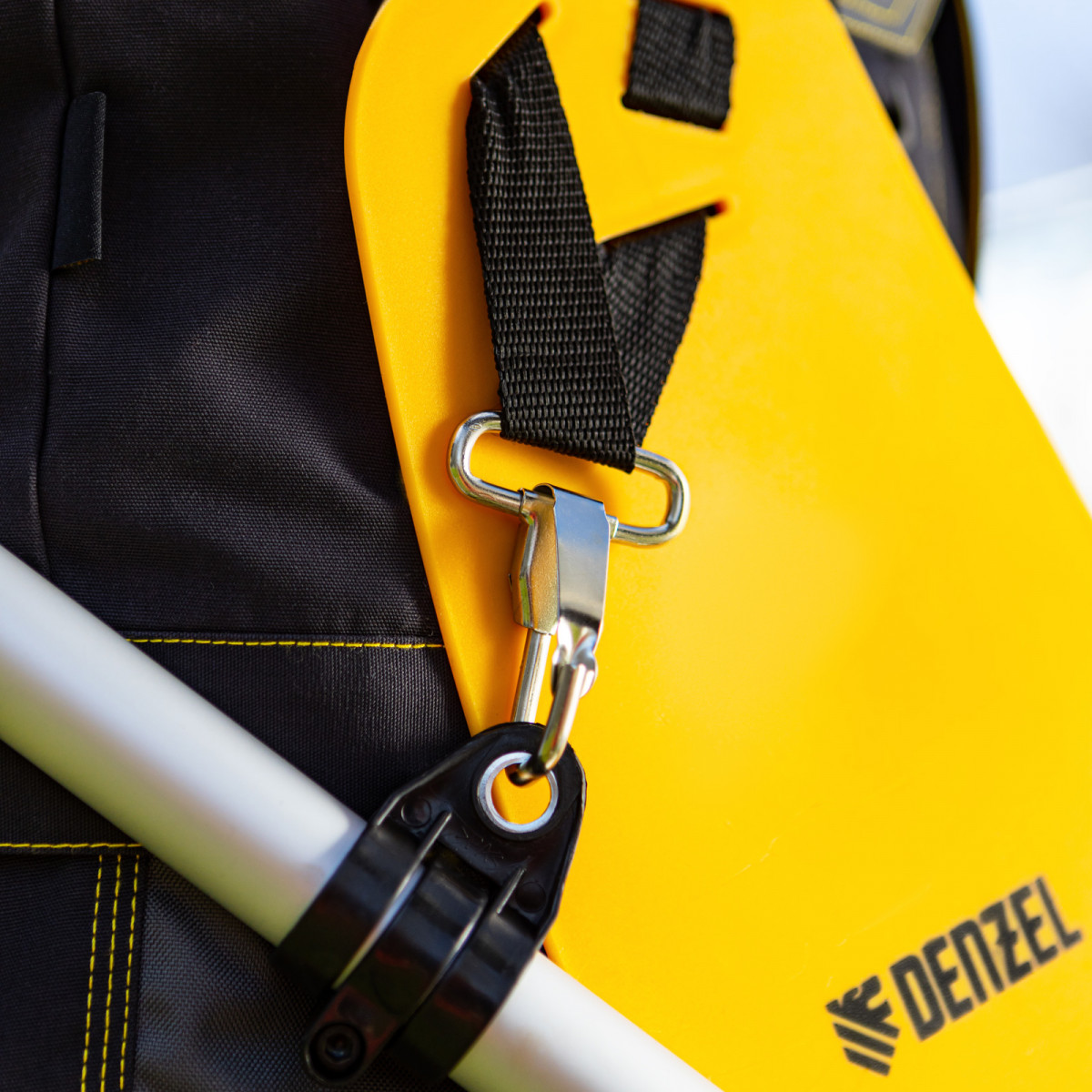 - Дополнительные возможности — можно приобрести и установить на триммер диск Denzel 96323 для быстрого удаления растительности с жесткими стеблями, 96328 для скашивания молодых побегов кустарника диаметром до 3 мм.