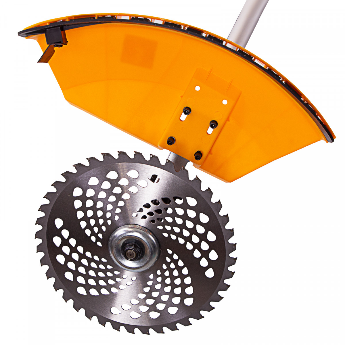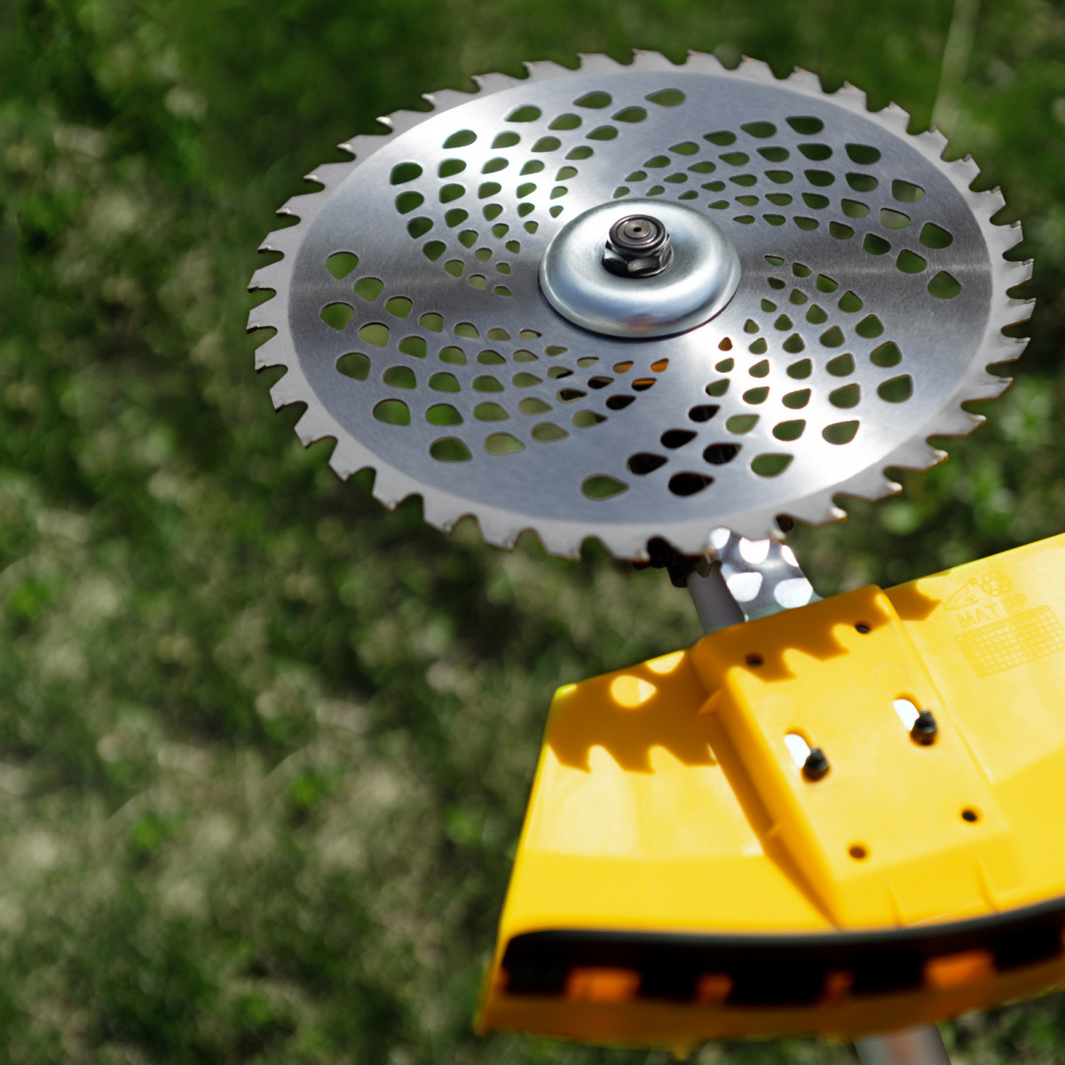 - Безопасность — пластиковый кожух защищает пользователя от вылетающей травы и мелких частиц.