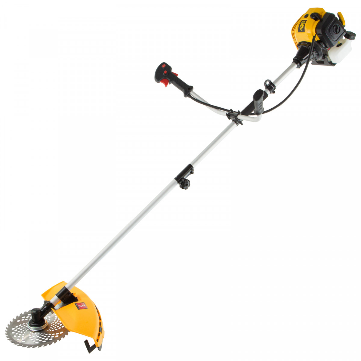 Бензиновый триммер Denzel DT-33S 96223 с двигателем мощностью 1,8 л.с. и объемом 33 см3, с разъемной штангой, поставляется комплектом из 2 частей и предназначен для подравнивания газона и скашивания травы всех типов, в том числе с жесткими древовидными стеблями (полыни, крапивы, лебеды, борщевика), а также срезания кустарника и молодых побегов деревьев с диаметром стволов до 10 мм. Удобен для работы в труднодоступных местах, может работать с мокрой травой. Режущими элементами являются катушка с леской и пильный диск, ширина скашивания составляет 420 мм и 255 мм соответственно.,Испытания подтвердили, что триммер способен работать до отказа 80 часов подряд.