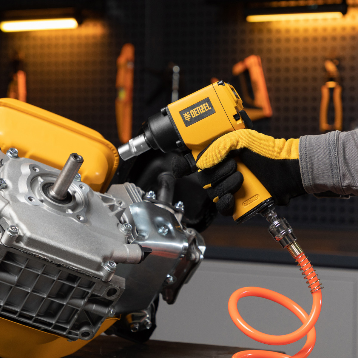 • Быстроразъемное соединение — подключение гайковерта к компрессору занимает несколько секунд.