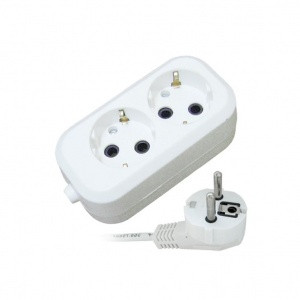 Бытовой удлинитель, 3гн., 2м, с заземлением, провод ПВС 3*0,75мм2, 220В, 10А, 2200Вт, белый, блистер