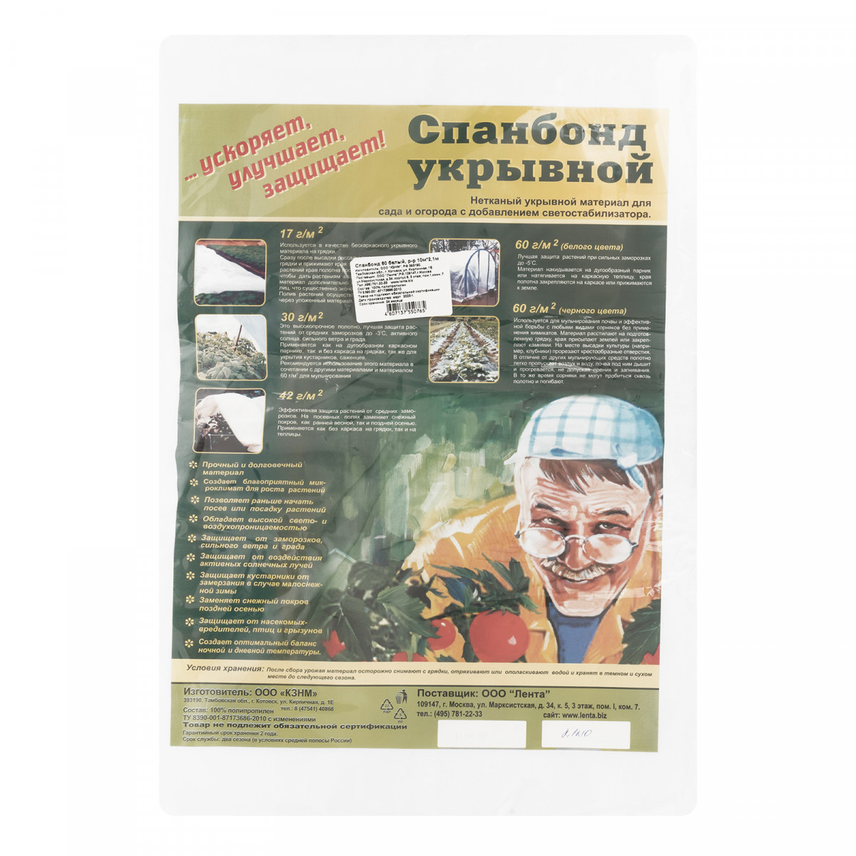 • Безопасность для окружающей среды — укрывной материал изготовлен из волокон экологически чистого полипропилена.