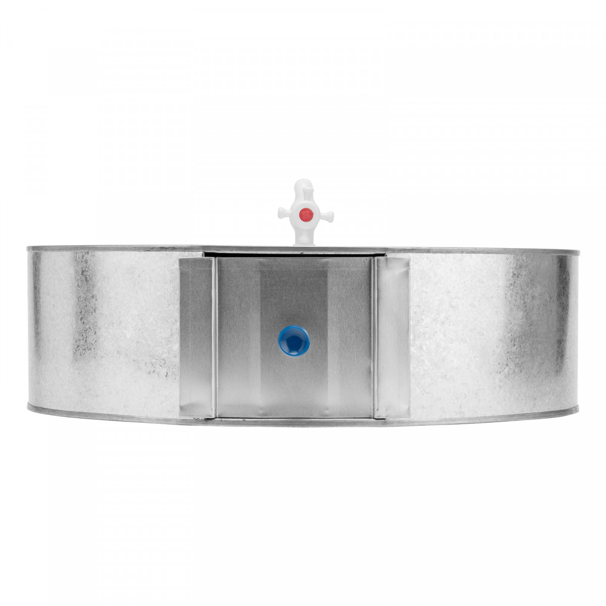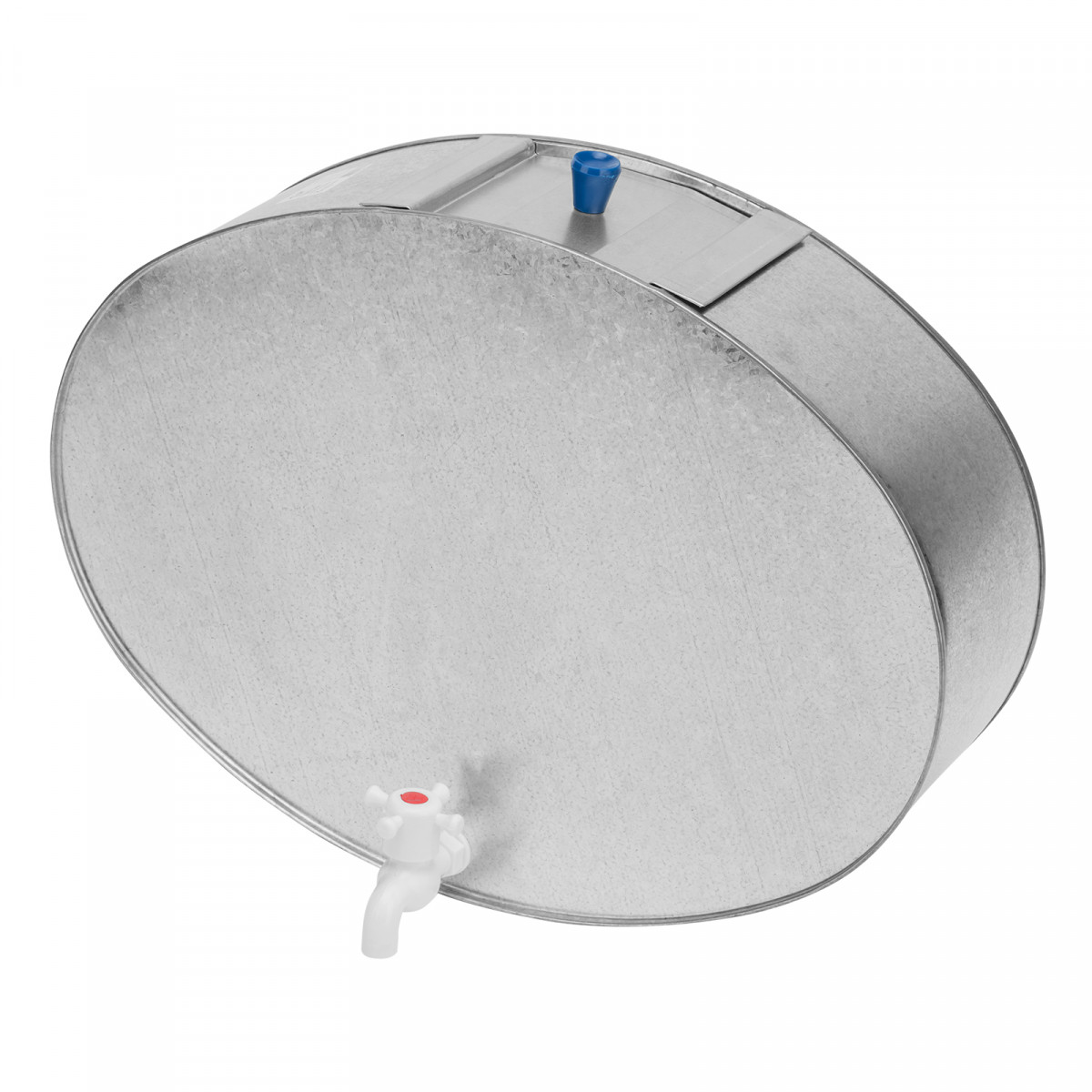 • Крышка предотвращает попадание грязи и пыли в воду, а оцинкованный бак не влияет на ее жесткость.