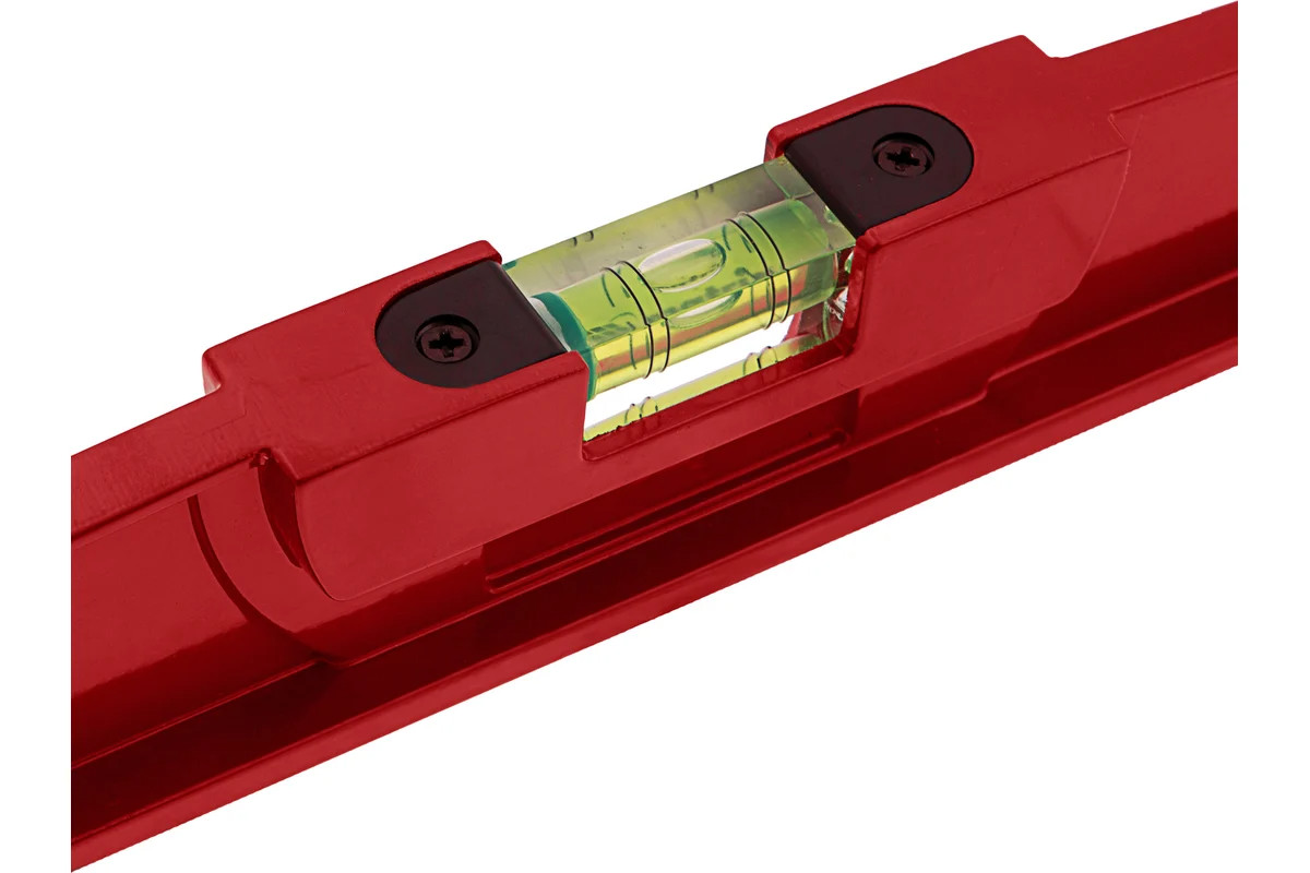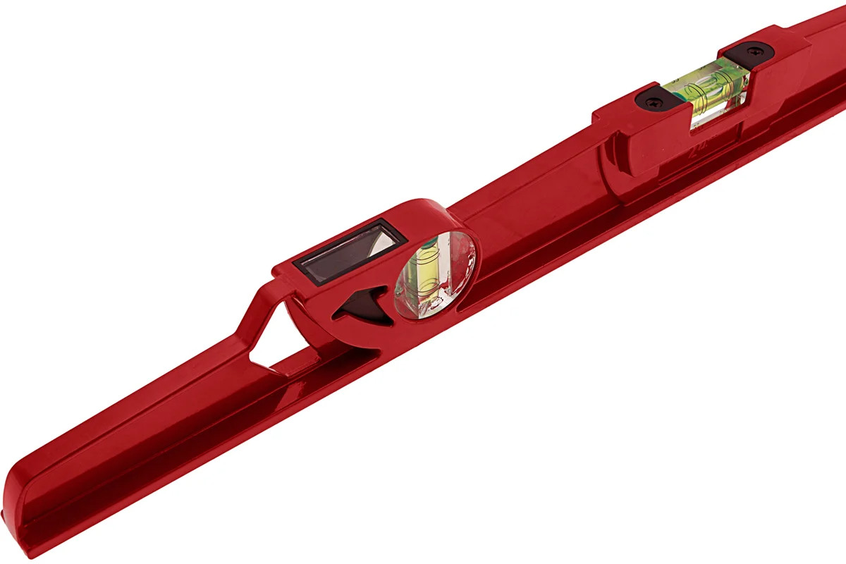 Ударопрочный цельнометаллический алюминиевый уровень длиной 600 мм подходит для работ по выравниванию плитки и кирпичной кладки. Уровень имеет цельнометаллический профиль, изготовленный методом литья, устойчив к скручиванию и имеет прорезиненную ударную площадку для дополнительного выравнивания материала. Уровень также оснащен дополнительным глазком с зеркальным отражателем, что значительно увеличивает скорость проводимых измерений и помогает исключить ошибки бокового зрения. Все глазки имеют дополнительные насечки для увеличения точности замеров (по четыре на каждом глазке). Фрезерованная базовая поверхность обеспечивает лучшее сцепление с выравниваемой поверхностью и уменьшает эффект скольжения. Фронтальный глазок имеет возможность регулировки, что значительно увеличивает срок службы данного изделия. Дополнительно на уровне нанесены схематичные пиктограммы, что позволяет производить самостоятельный выбор изделия.