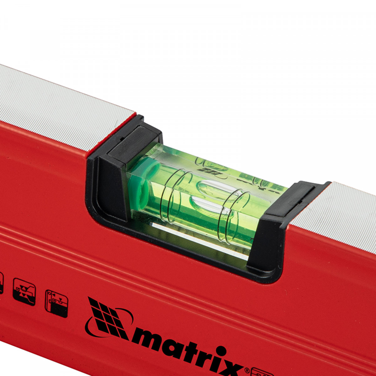 Уровень алюминиевый магнитный Matrix 34708 усиленной конструкции, длиной 800 мм, с фрезерованной рабочей поверхностью, оснащен 3 глазками и одним зеркальным отражателем. Позволяет выявить отклонения от вертикали, горизонтали и угла 45°. Встроенный зеркальный глазок облегчает считывание показаний.