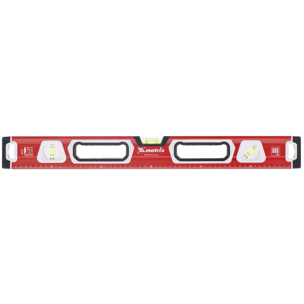 Уровень алюминиевый фрезерованный Matrix 34733 длиной 1000 мм, с магнитной полосой и 2-компонентными рукоятками, 3 глазками и 1 зеркальным отражателем, — измерительный инструмент для контроля отклонений поверхностей от горизонтали, вертикали и угла 45°. Используется для выполнения работ, требующих высокой точности.