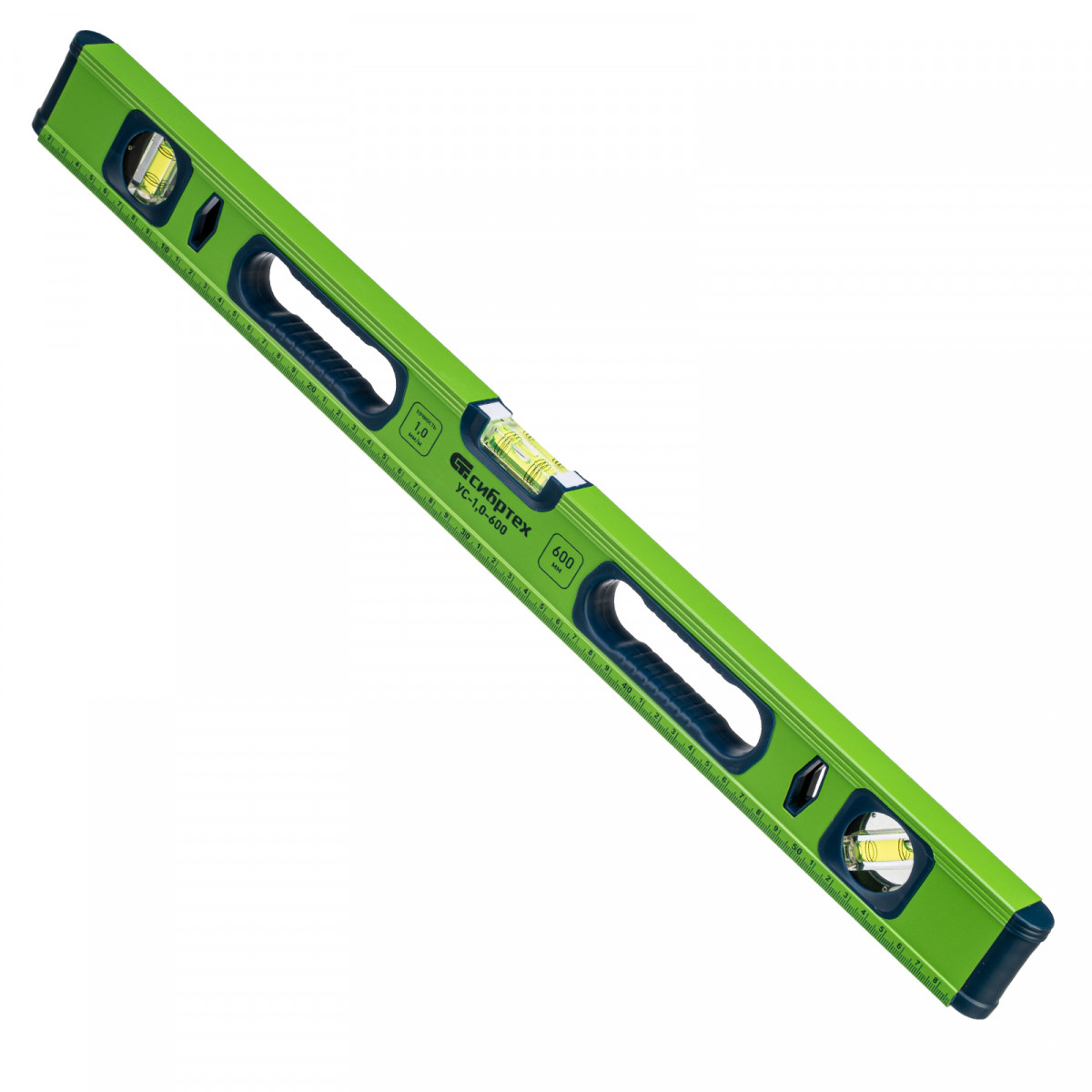 Уровень алюминиевый УС-1, 0-600, фрезерованный, 3 глазка, рукоятки, 600 мм Сибртех