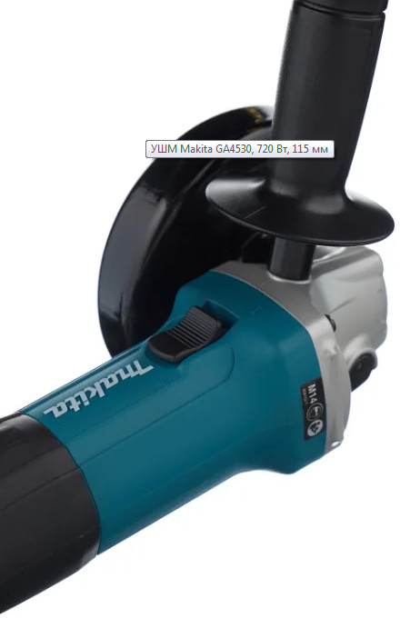 Угловая шлифмашина Makita GA 4530 применяется для выполнения сложных отрезных и шлифовальных работ, а также работ по зачистке металла, камня, кирпича. Инструмент прост в использовании, имеет удобную компактную форму корпуса. Смена дисков и фиксация защитного кожуха производятся без дополнительных инструментов.