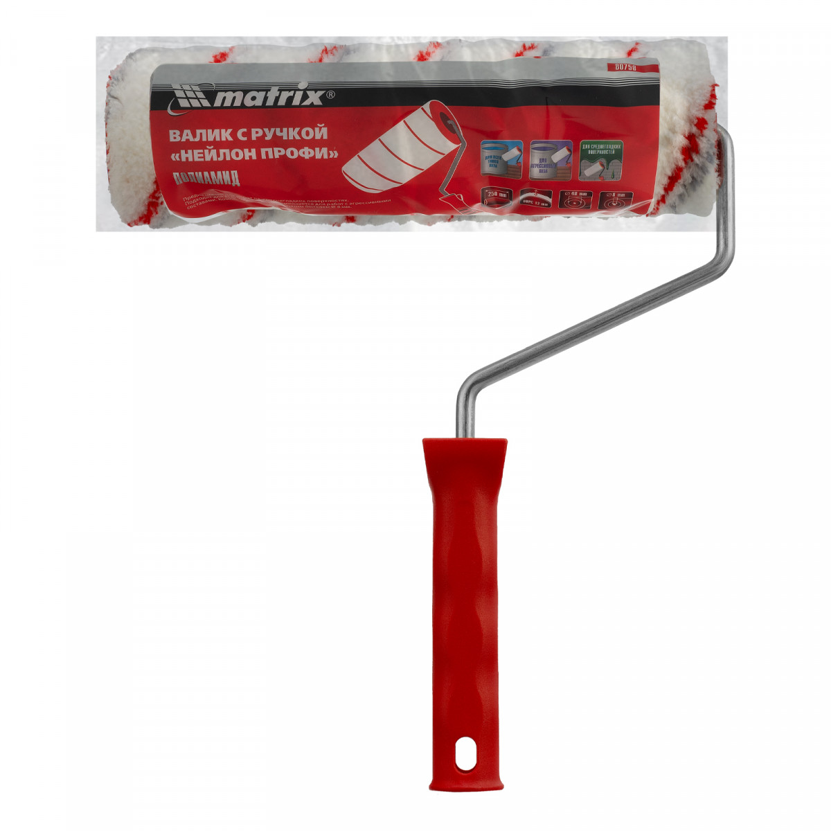 Валик Matrix «Нейлон Профи» 80758 шириной 250 мм, с полиамидным ворсом длиной 12 мм, диаметром ролика 48 мм и диаметром ручки 8 мм предназначен для нанесения любых типов лакокрасочных материалов на поверхности с гладкой текстурой и небольшим рельефом. Ширина 250 мм позволяет эффективно и быстро окрашивать большие площади: стены, потолки, фасады и т.д. Высокое качество работ обеспечивает полиамидная шубка с длиной ворса 12 мм.