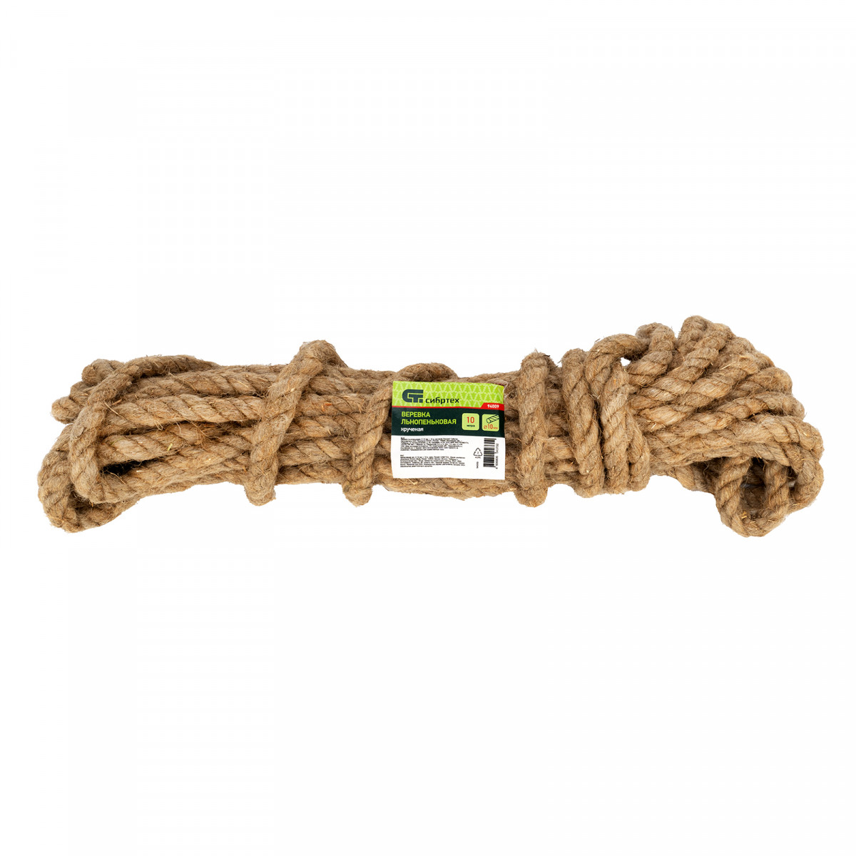 Льнопеньковая крученая веревка Сибртех 94009 диаметром 10 мм и длиной 10 м крепко связывает и закрепляет различные предметы и грузы. Применяется в быту, сельском хозяйстве, торговле, промышленности и строительстве.