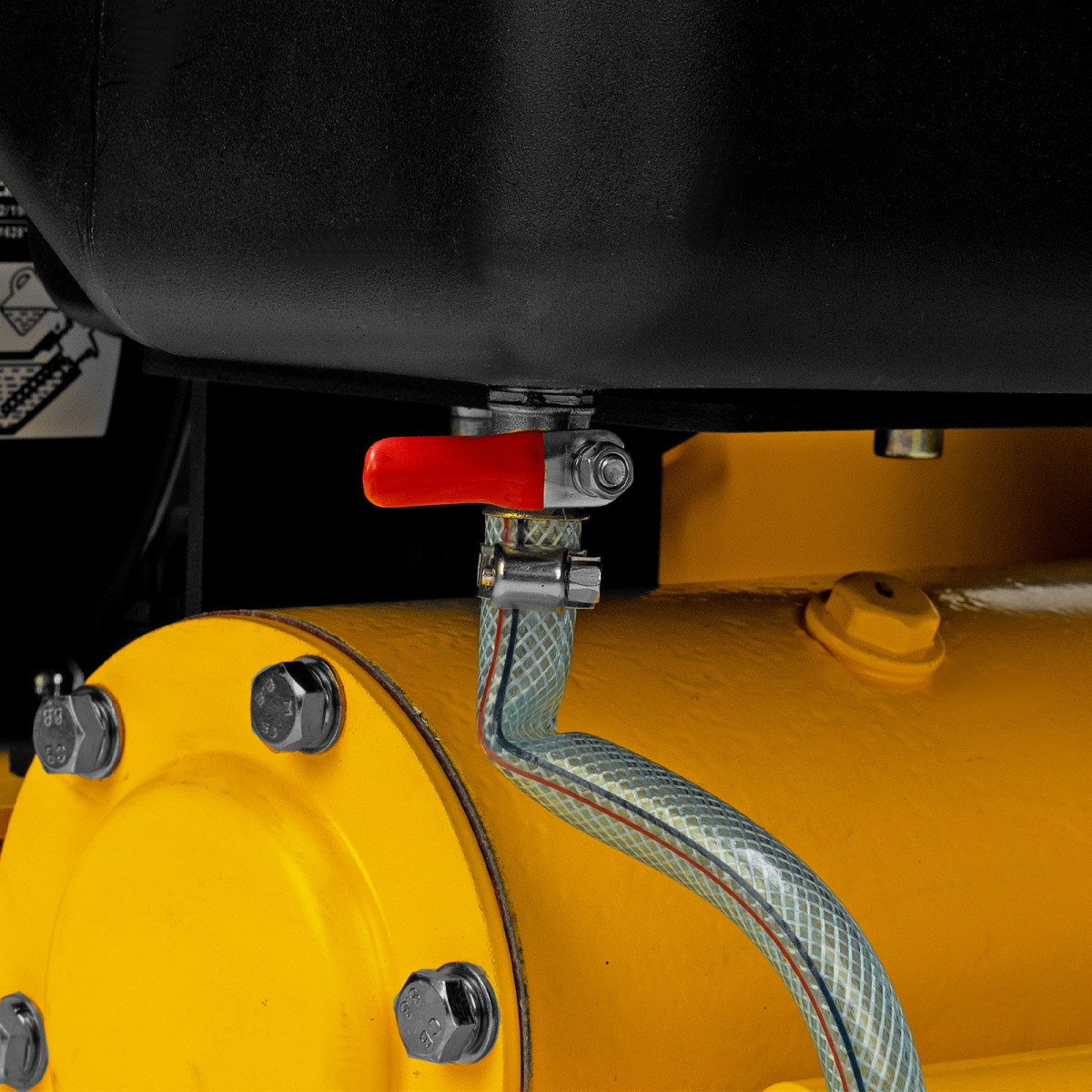 - Удобная работа с горячим асфальтом и липкими смесями — на виброплите установлен бак для воды, орошение уплотняемого покрытия предотвращает его налипание на основание плиты.