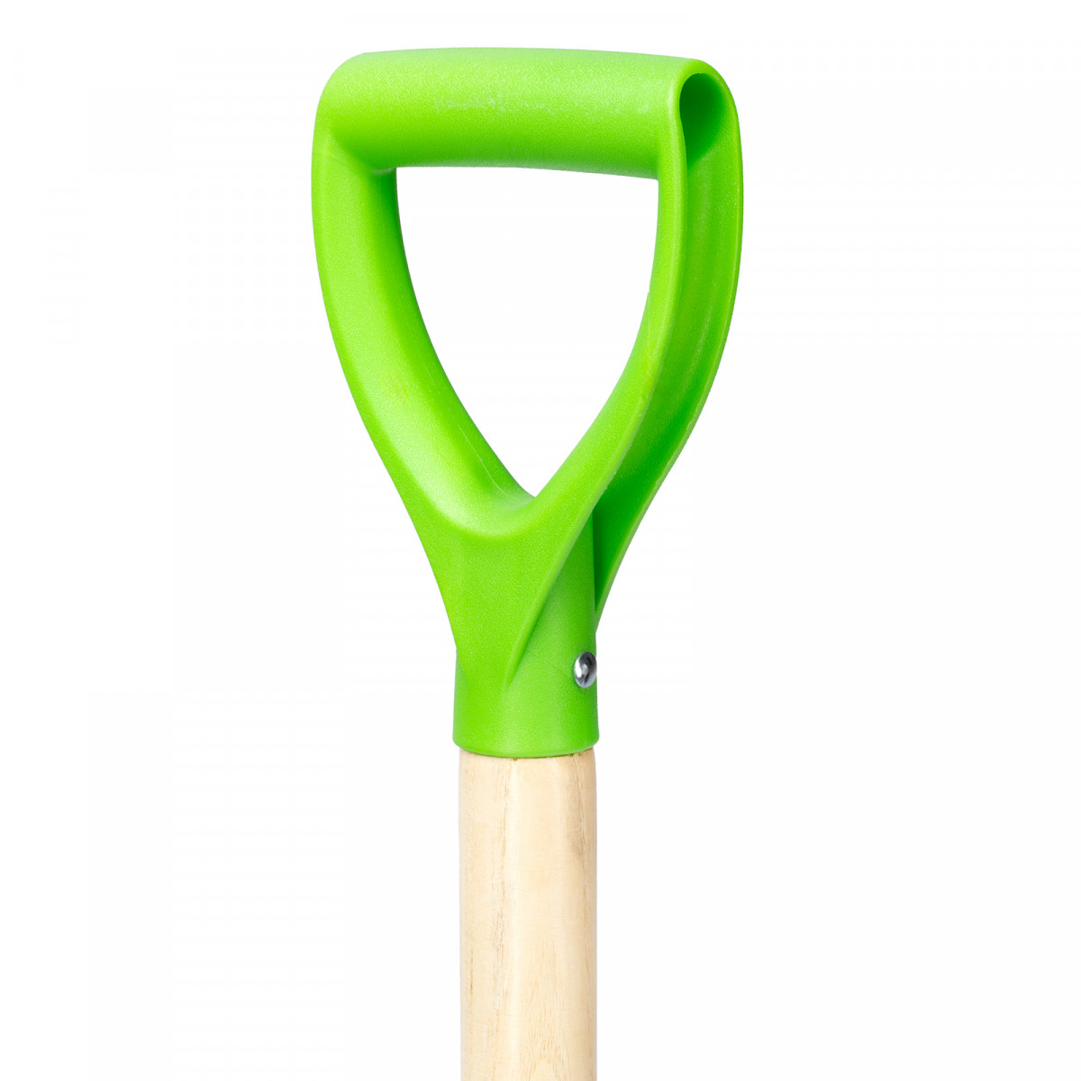 • Долговечность — антикоррозийное покрытие предотвращает разрушение, деревянный черенок покрыт лаком для защиты от влаги.