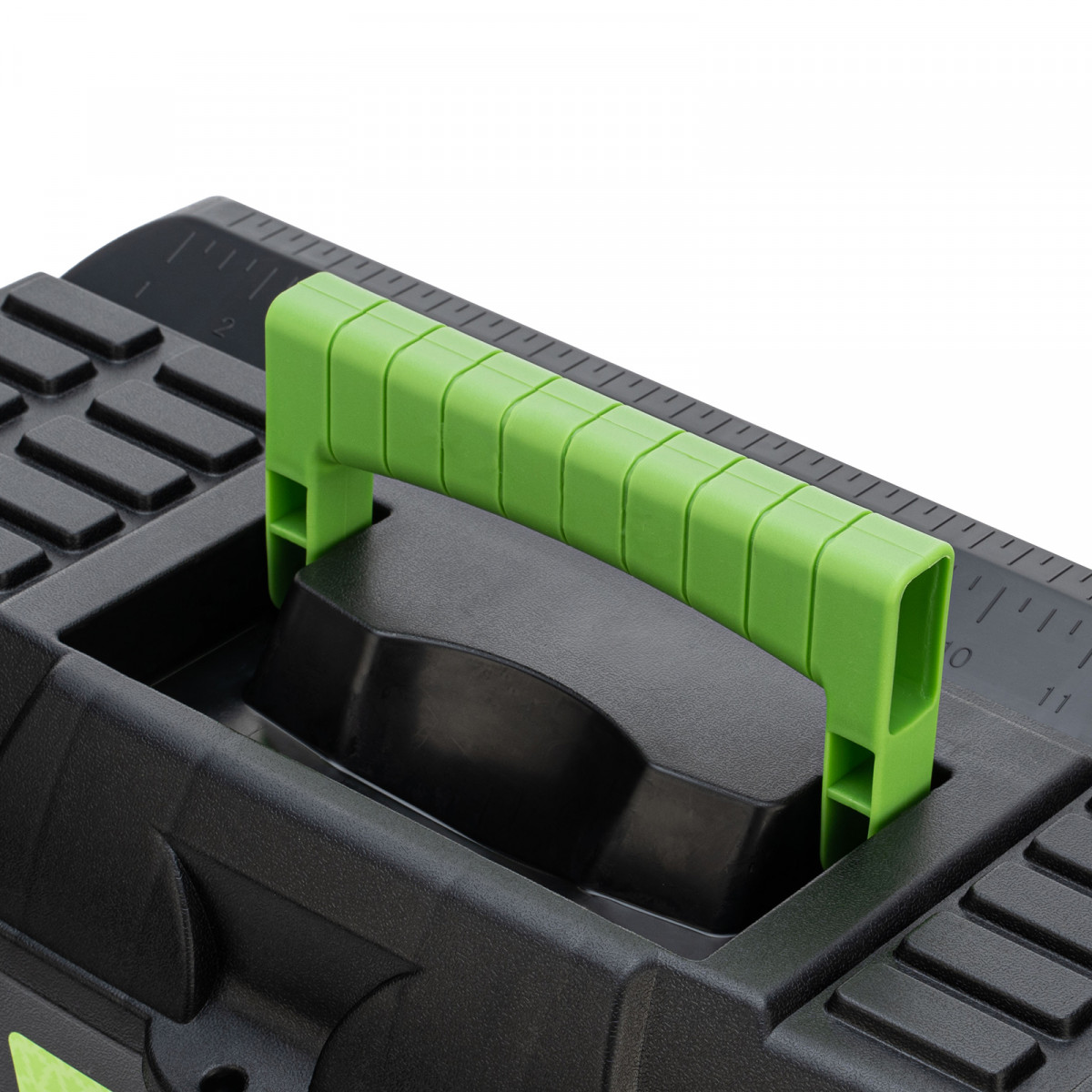 Ящик для инструмента Сибртех 90805 из пластика, размером 430 х 235 х 250 мм (длина 18"), — удобное вместилище для инструментов, бытовых мелочей, рыболовных снастей. На крышку нанесена измерительная шкала в сантиметрах и дюймах, поэтому можно проводить измерения, даже если под рукой нет линейки. Ящик пригодится в поездке, на рыбалке, а также дома, на даче или в гараже.