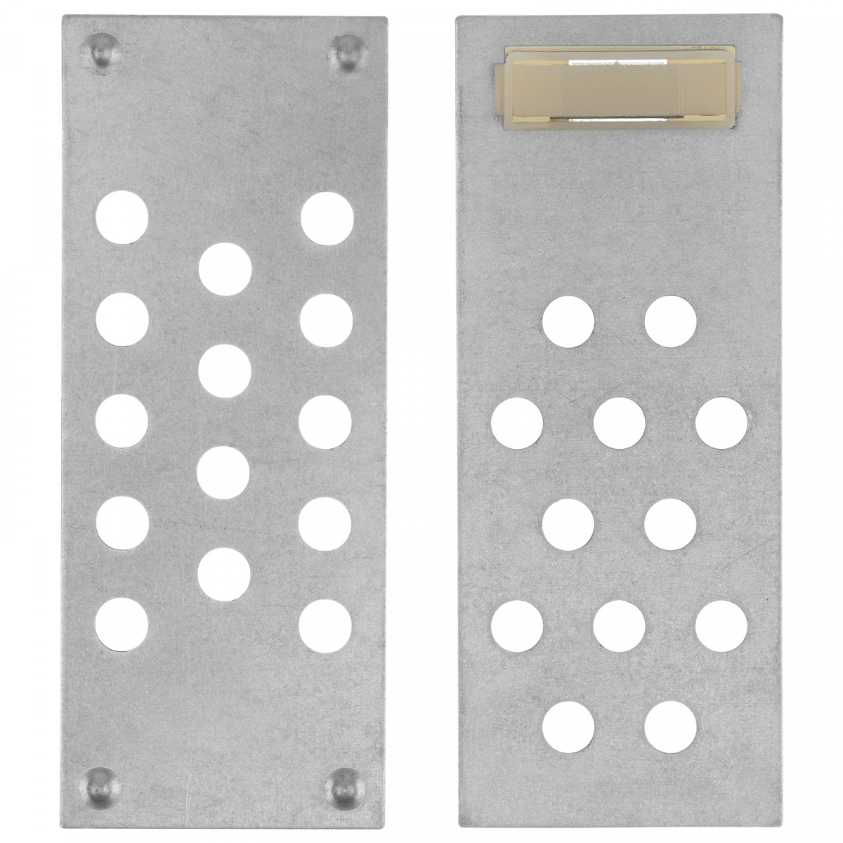 • Быстрый монтаж — в пластинах и ответных частях предусмотрено по 12 отверстий для крепления плитки (панели), вес изделий составляет 167 г.