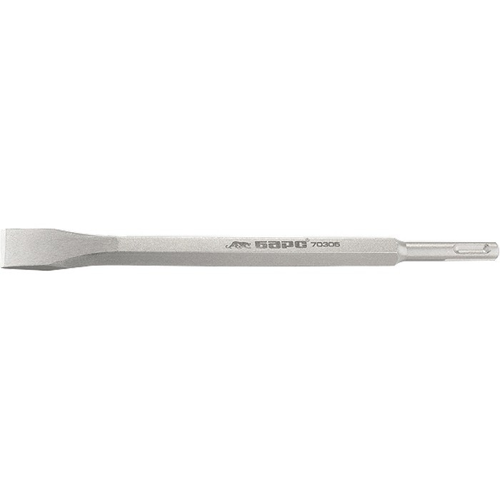 Зубило Барс 70305 размером 14 х 20 х 250 мм, из стали 60 CrV, с хвостовиком SDS PLUS, применяется совместно с перфоратором для дробления твердых материалов: камня, бетона и кирпича. Пригодится частным и профессиональным мастерам для разрушения различных конструкций, демонтажа старой отделки, штробления стен и выполнения других операций.