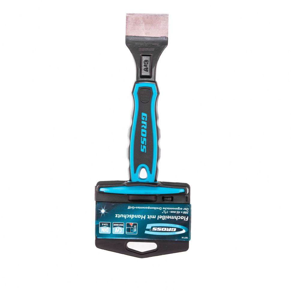 Зубило-конопатка GROSS 215х60 мм-2-3/8 18715 выполнено из прочной углеродистой стали 45. На рабочую часть дополнительно нанесено защитное покрытие. Твердость полотна 48-58 позволяет работать с большинством сортов стали. На рукояти есть специальная защита для пальцев. |